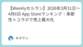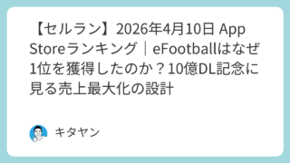 ゲーム 【セルラン】2026年4月10日 App Storeランキング|eFootballはなぜ1位を獲得したのか?10億DL記念に見る売上最大化の設計