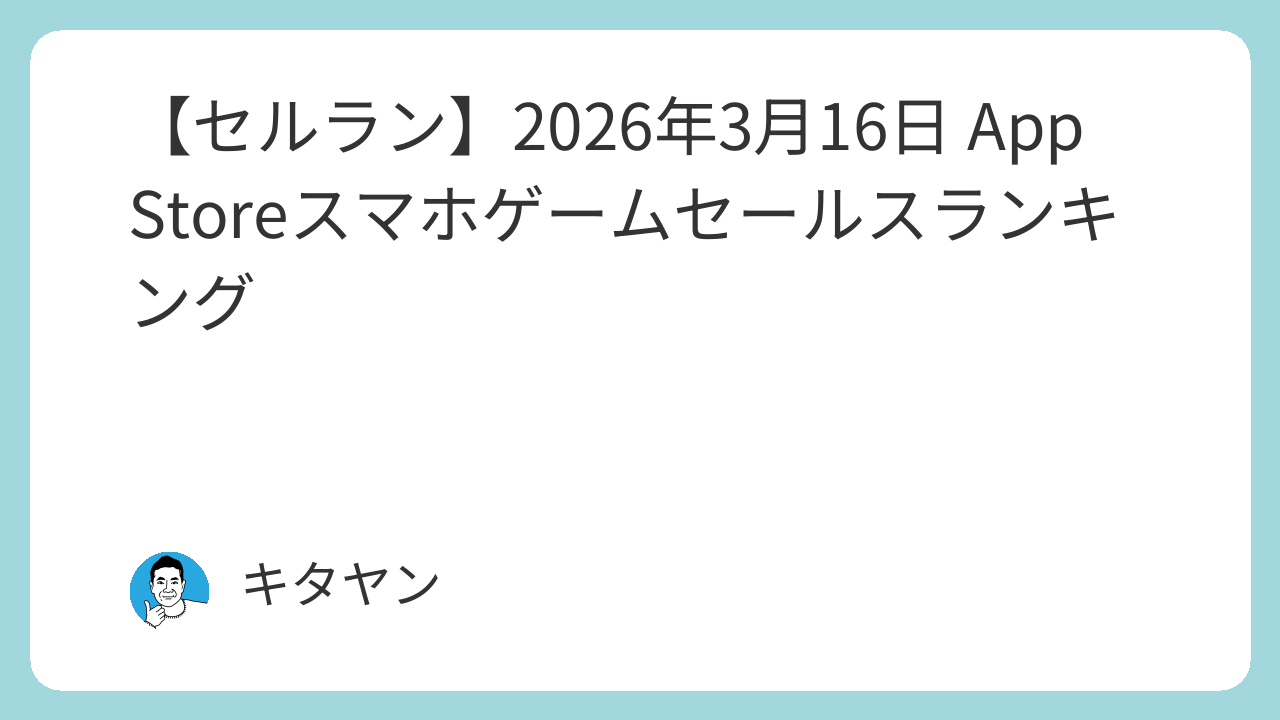 【セルラン】2026年3月16日 App Storeスマホゲームセールスランキング