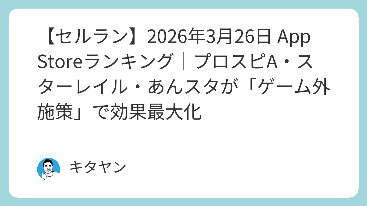 2026年3月26日のランキングでは、プロ野球開幕やPV公開、音楽配信といった「ゲーム外施策」が売上を左右する構造が明確に現れた。